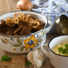Rindsgulasch mit Butterspätzle gegrilltem Paprika
